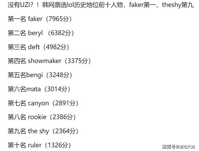 2026-04-06英雄联盟赛事官网,英雄联盟官方网站,英雄联盟投注网站LCK网友发起投票,LOL历史地位排行榜,Uzi连前10都没进,这份由韩网票选出的“LOL历史地位前十”榜单一出,立刻在中韩玩家社区掀起巨大争议,尤其是Uzi仅排在第15名,甚至未能进入前十,更是成为舆论焦点。