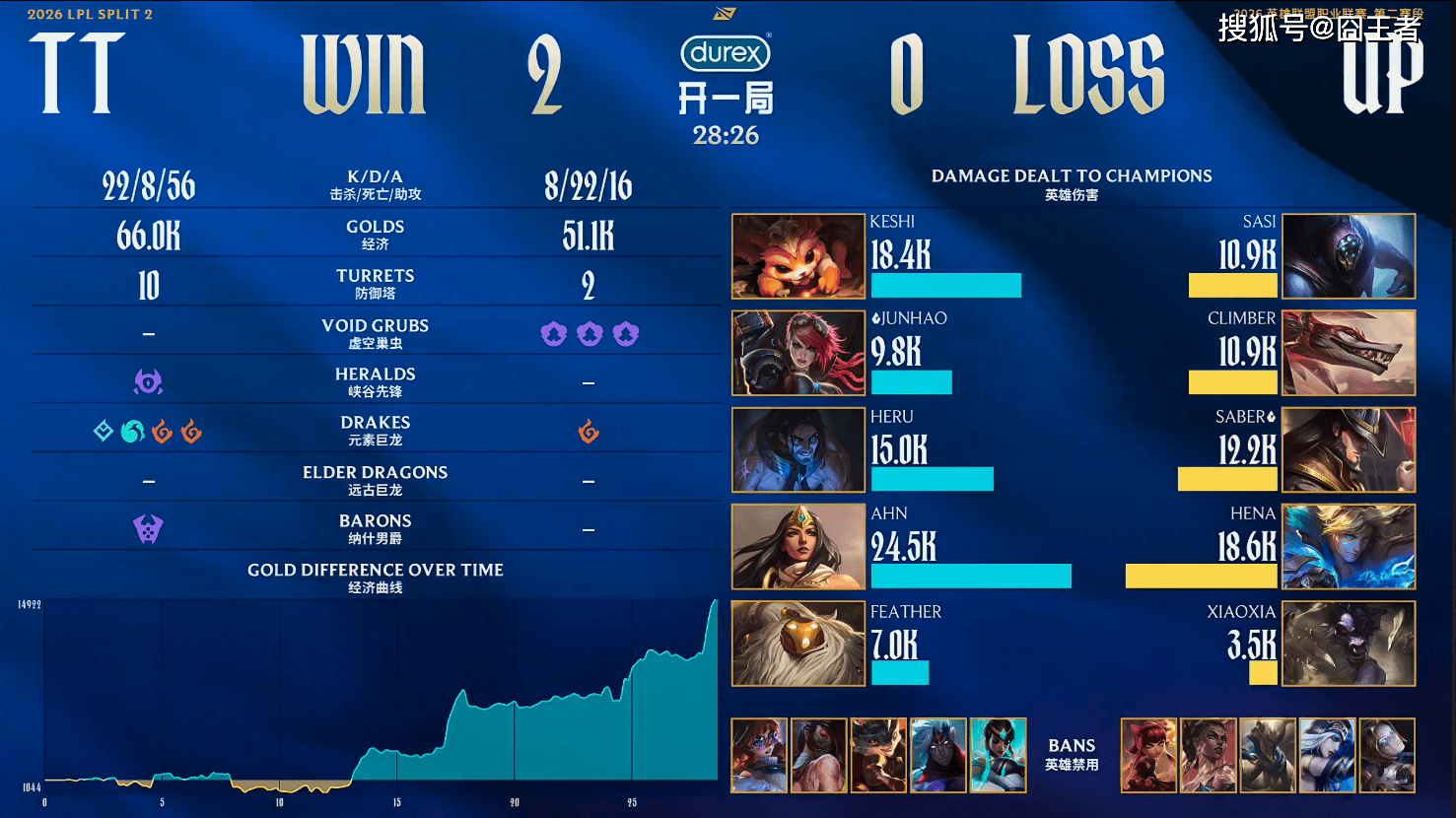 最终TT零封UP,赢下比赛。不得不说,UP这个队真是不带演戏的,早早吃完美美下班。BP选牛头不ban塞拉斯,打野玩个狗,永远交W先手去送人头,生怕别人不知道是在吃米。TT嘛,没啥好说的,他赢了。返回搜狐,查看更多