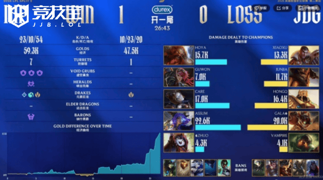比赛开局,NIP下路组合率先完成线杀,迅速掌握主动权。尽管JDG在河道抓住机会,由HongQ沙皇打出一波三杀短暂止血,但整体节奏依旧被NIP牢牢控制。进入中期,JDG频繁被抓单,团战端也难以限制Guwon蔚的强势开团,多次被其“带球进场”打乱阵型。关键团战,NIP打出一波完美配合直接团灭JDG,经济差瞬间拉开。随后中路推进中,Junjia皇子强开Assum芸阿娜失败反被击杀,HongQ沙皇进场也被蔚大招锁定送出人头。NIP顺势推进高地再度团灭对手,先下一城。