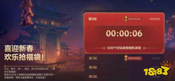 每一轮最多可以领取5份福袋奖励,参与全部5轮的召唤师最多领取可25份奖励,除夕、初一更有限量1000份新春好运皮肤随机宝箱掉落。