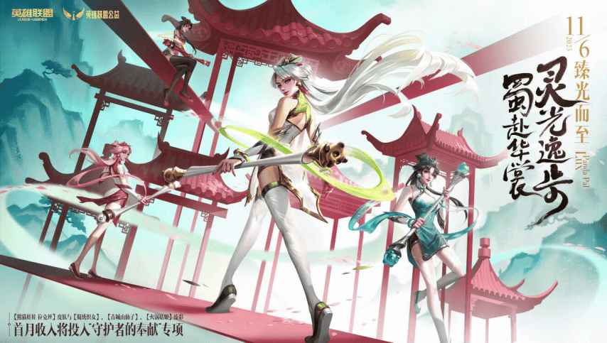 《英雄联盟》此次将目光放在了非物质文化遗产,将以国宝大熊猫为灵感打造的公益皮肤“熊猫娃娃 拉克丝”与非遗文化元素结合,创作出三款臻彩“蜀绣佳人”“青城山仙子”和“火锅姑娘”的海报,以谦逊的姿态表达对中华传统艺术的敬畏与欣赏。