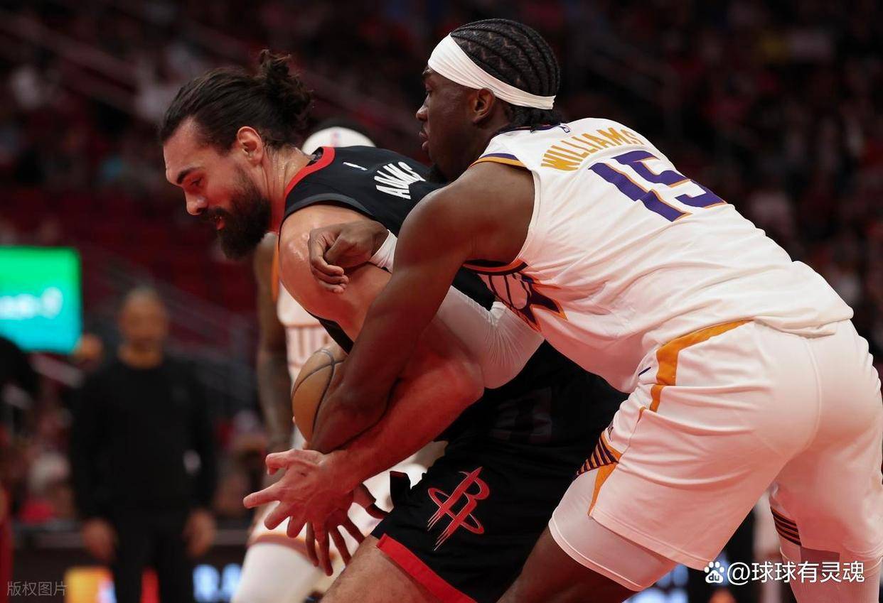 第三个,亚当斯真是救星。 申京一伤,内线就指着他了。 今天他抢了11个篮板,其中有6个是前场板。 咱们今天投篮这么铁,为啥还能咬住? 就是靠这些篮板球,多了好多二次进攻的机会。 全场篮板赢了太阳11个,亚当斯功不可没。 他在篮下的卡位、掩护,这些脏活累活,数据体现不全,但球队太需要了。